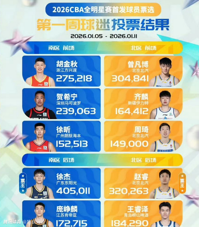 值得一提的是徐昕在目前的全明星首发投票当中,跻身南区前场球员首发的位置,若是能保持稳定的表现,以徐昕目前的身体状态,以及个人数据,不排除新赛季直接进入首发名单的可能性。