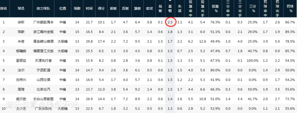 截止目前,徐昕以场均2.4个封盖占据联盟封盖榜单第一,毫无疑问是非常具有代表性的成绩单。