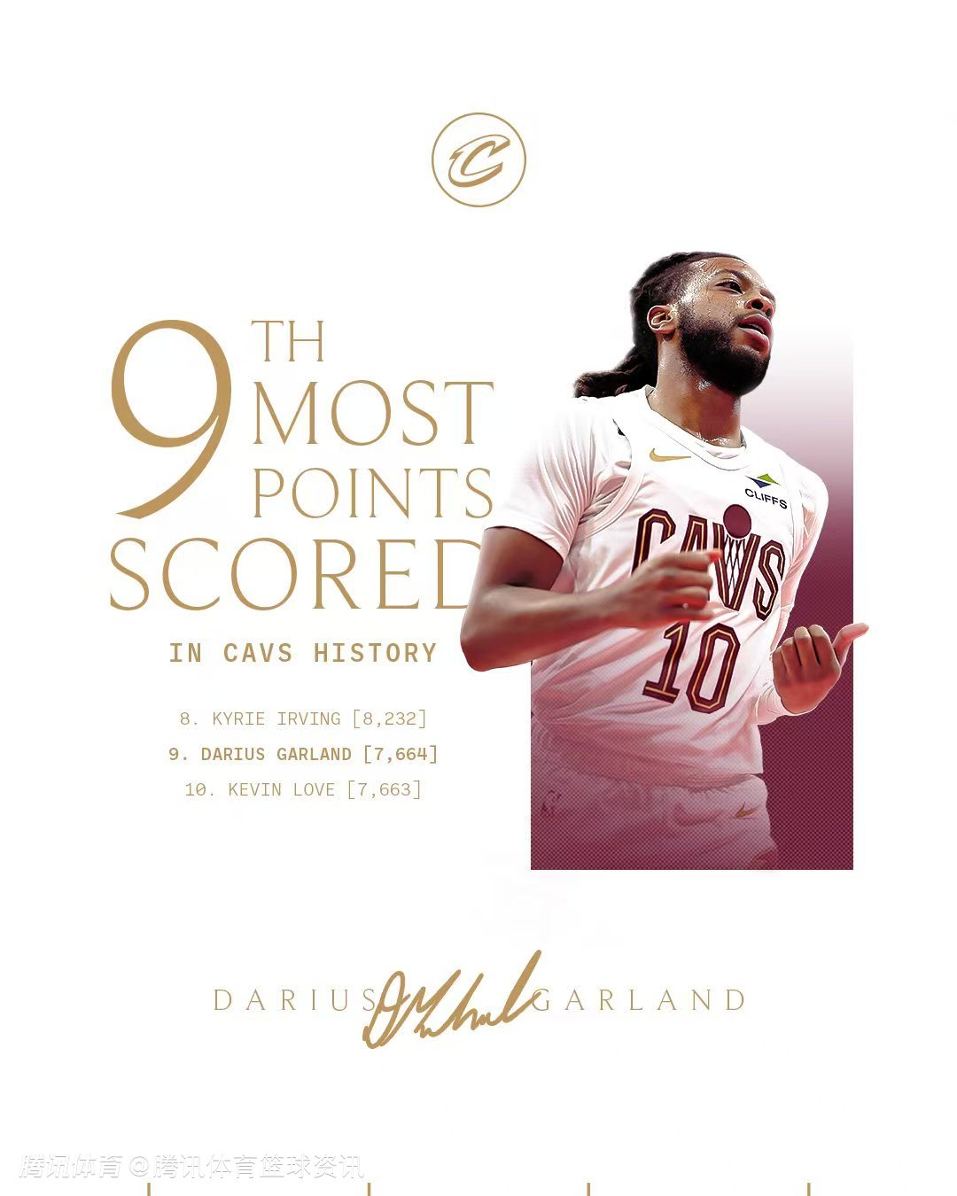 里程碑!加兰生涯得分达到7664分 超越乐福升至骑士队史第九