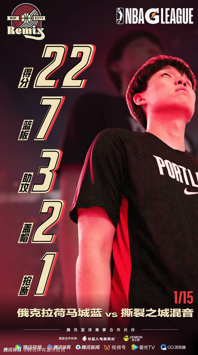 2026-01-15 12:20北京时间1月15日,G联盟常规赛,撕裂之城以123-99击败俄克拉荷马蓝,杨瀚森发挥出色,拿到G联盟生涯新高的22分。