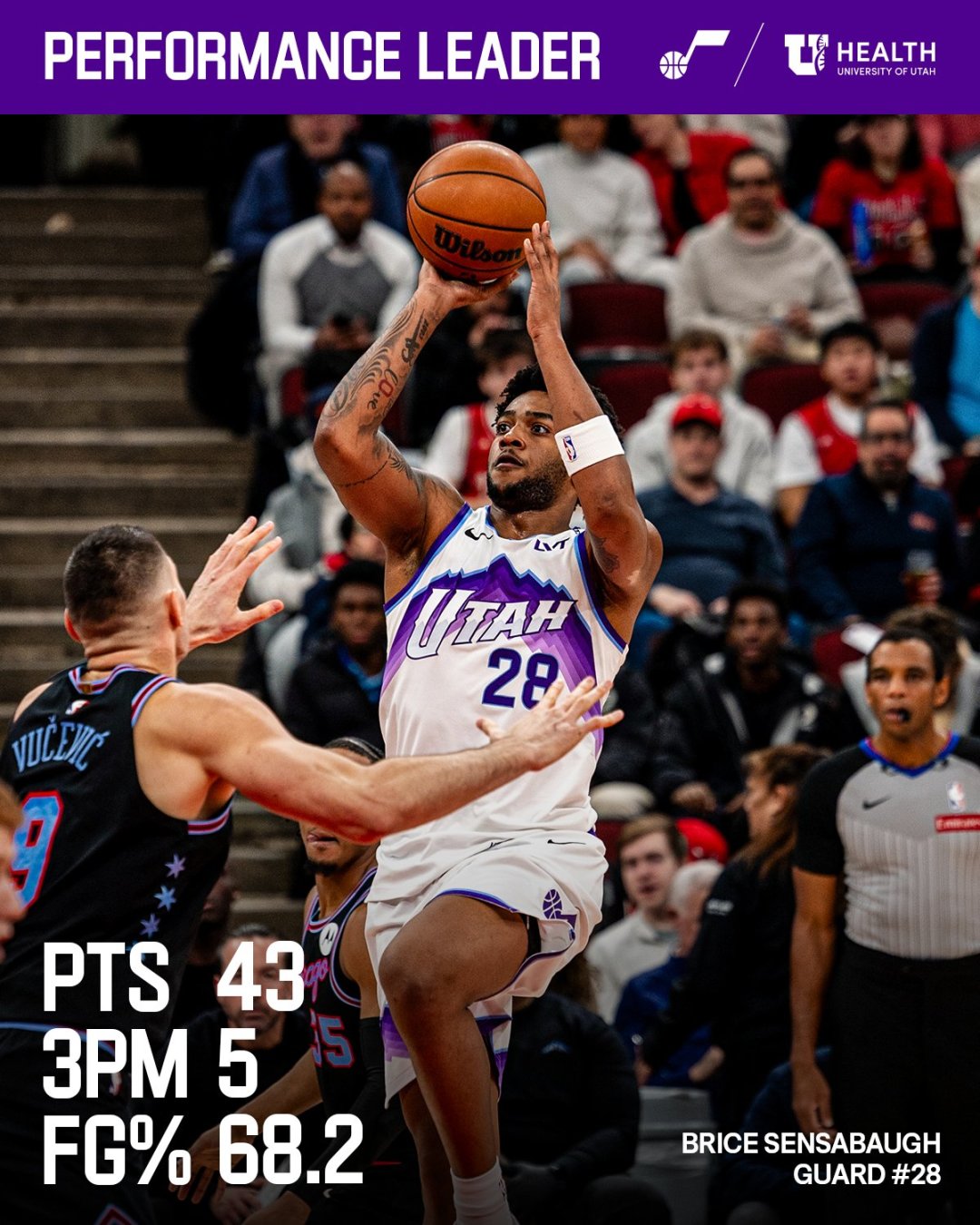 森萨博在对阵公牛队的上半场便得到28分,距离爵士队史由罗德尼·胡德在2016年3月28日对阵洛杉矶湖人队时创下的半场30分纪录仅差2分,该纪录同时涵盖首发与替补球员。