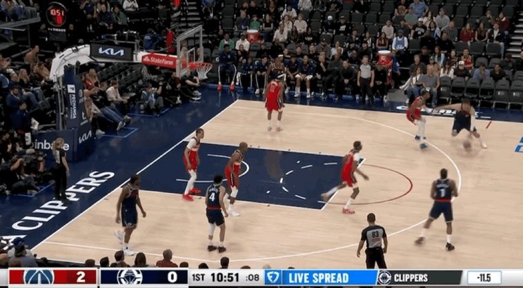 首节比赛开始,米德尔顿急停跳投,率先为奇才取得首次运动战进球。洛佩斯突破扣篮,米德尔顿包揽奇才开局前7分,莱昂纳德和哈登连续得分,萨尔勾手打进。快船打出一波12-0的进攻高潮,约翰逊三分止损,莱昂纳德2罚全中,库利巴利暴扣打进2+1。洛佩斯和米勒连得5分,快船打出一波10-2的进攻高潮拉开分差到双位数。巴格利2罚1中,尼德豪泽和巴图姆连得5分,巴格利空接暴扣。首节比赛结束,奇才22-37落后快船。