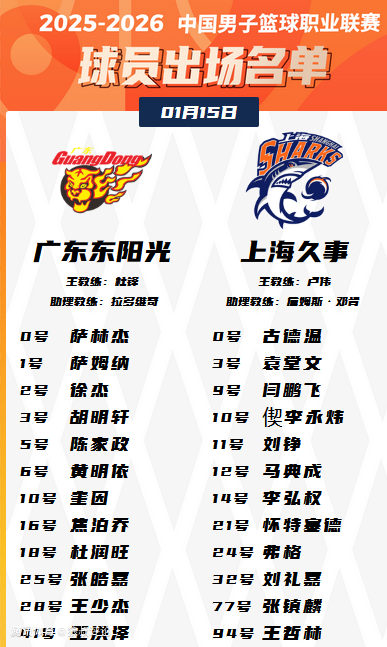2026-01-15 19:00北京时间1月15日,CBA常规赛继续开打,广东男篮主场迎战上海男篮。