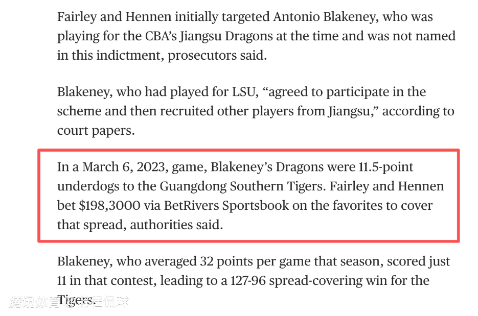 美国媒体的报道显示布莱克尼及其背后的帮手,下注的一场比赛是2023年3月6日对阵广东队的比赛。