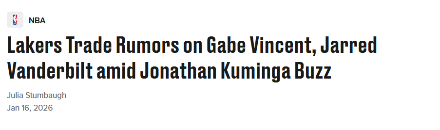 2026-01-16 06:30北京时间1月16日,据NBA名记凯文-奥康纳透露,洛杉矶湖人队正考虑在交易截止日前将文森特和范德比尔特打包交易。奥康纳表示,湖人还在兜售他们2032年的首轮签,希望以此换取“两到三个”顺位更低的首轮签。