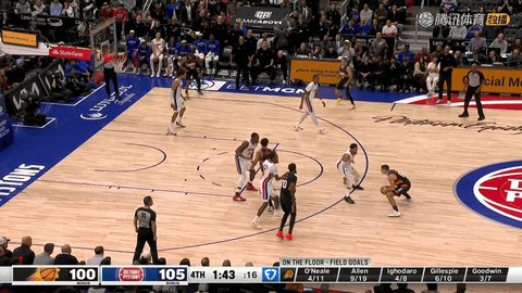 比赛最后两分钟,场上进入拉锯。第四节还剩1分52秒,坎宁安通过罚球把比分改写为105-100。还剩1分32秒时,阿伦突破抛投命中,将分差缩小到3分。