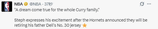 库里谈黄蜂退役老爹30号球衣:这对整个家族来说都是梦想成真的一件事