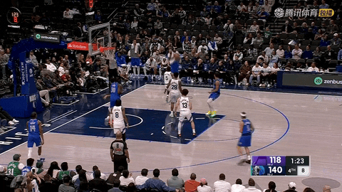 比赛还剩3分16秒时,哈迪再中一记三分,帮助独行侠把比分扩大到114:140,此时全队本场三分命中数已经达到19记。