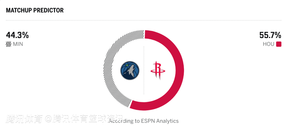 火箭55.7%,森林狼44.3%