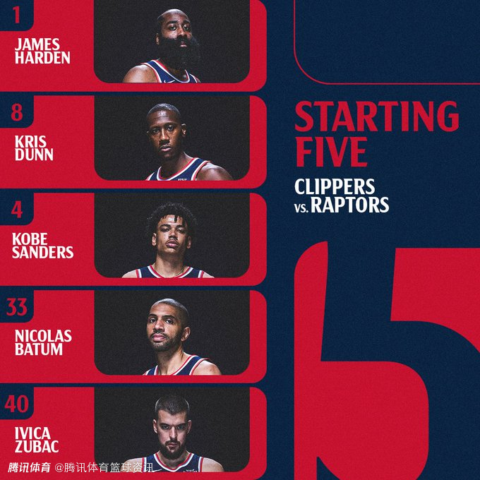 快船vs猛龙首发出炉:哈登领衔出战 桑德斯顶替小卡