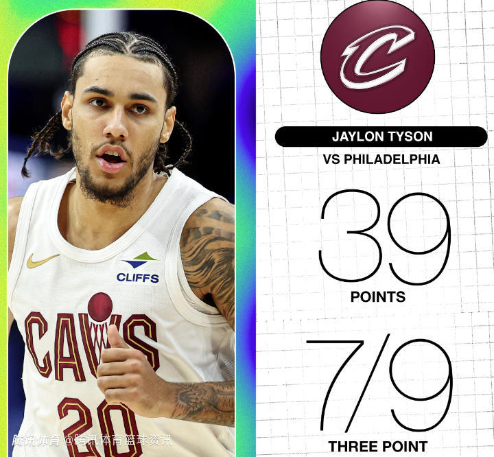 2026-01-17 11:20北京时间1月17日,NBA常规赛继续进行,骑士队117-115击败76人队。本场比赛,骑士队多名球员表现出色,其中杰伦-泰森此役17投13中(三分球9投7中)得到39分5篮板4助攻,根据数据统计显示,单场39分和7记三分球,均创泰森职业生涯新高。在比赛最后时刻,泰森还助攻莫布利完成准绝杀扣篮。