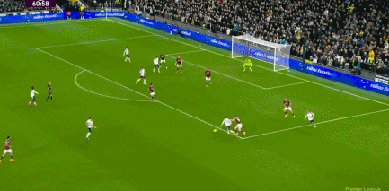 第59分钟,西汉姆右路传中,费利佩前点侧身凌空扫射未能命中目标。