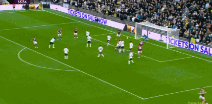 第36分钟,西汉姆利用角球进攻,鲍文门前近距离捡漏,但越位在先进球无效。