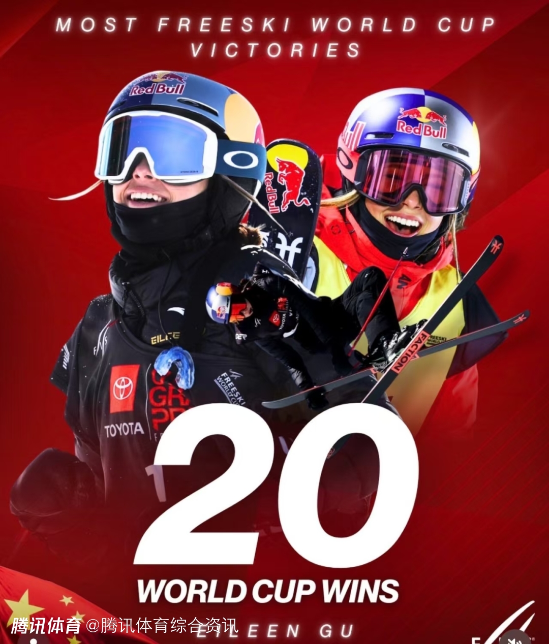 此冠使得谷爱凌成为国际雪联自由式滑雪世界杯夺冠次数最多的运动员,为历史上首位达成20冠里程碑的选手。