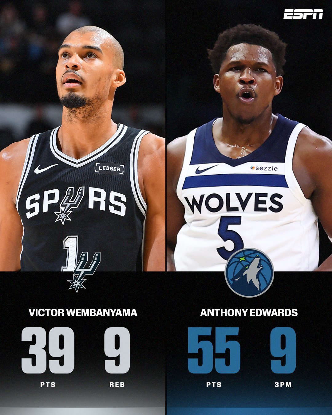 文班亚马+爱德华兹贡献94分 联手创造状元对决最高总得分纪录