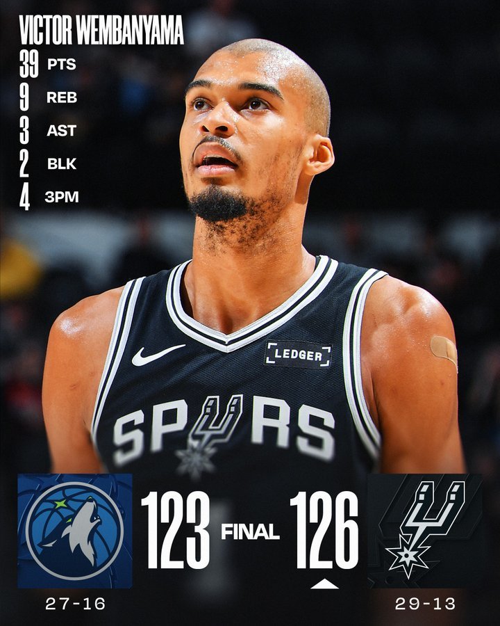 文班亚马为马刺贡献全场最高的39分。“比赛很有趣,虽非最精彩但确实充满乐趣。”文班亚马表示,“这场胜利价值连城,因为目前西部竞争格局激烈。”