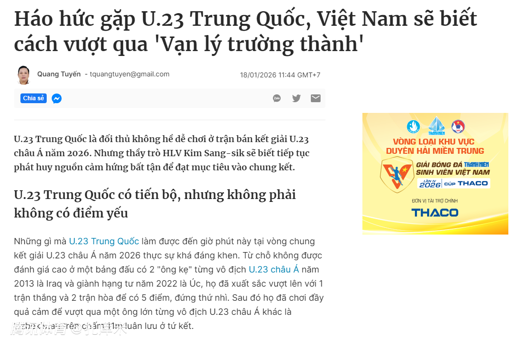 2026-01-18 19:10U23亚洲杯半决赛,中国队将对阵越南队。赛前,越南媒体表示,虽然中国队的表现可圈可点,但并非无懈可击,越南队只要保持冷静,一定能撕开李昊为首的中国队防线。