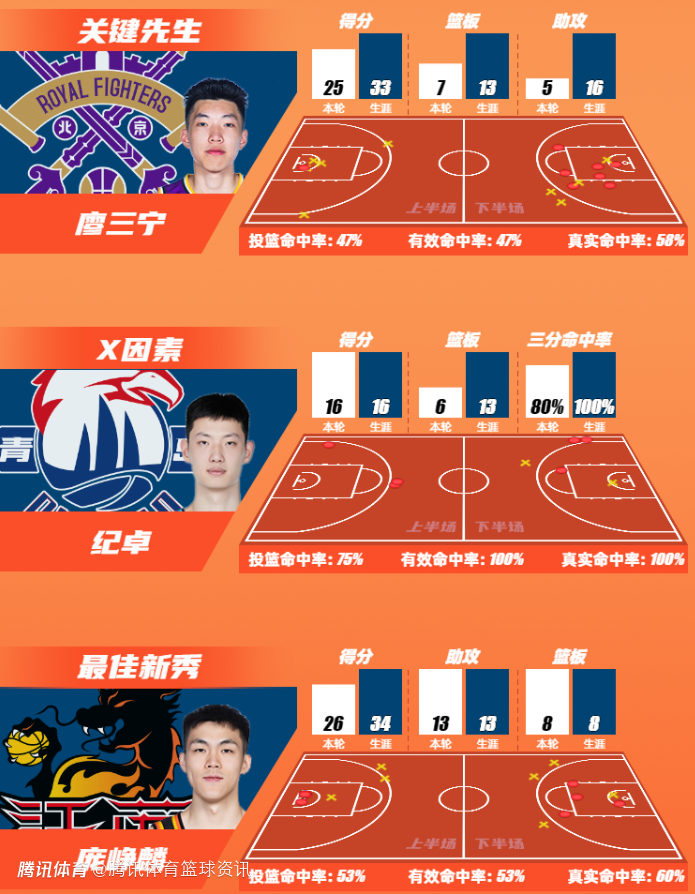 2026-01-19 09:40北京时间1月19日,CBA官方发布常规赛第16轮数据战报及最佳阵容。来自天津男篮的詹姆斯(26分12篮板)、青岛男篮的米奇(21分8篮板)、深圳男篮的贺希宁(32分9篮板)、江苏男篮的庞峥麟(26分13助攻)和北控男篮的廖三宁(25分7篮板)入选。