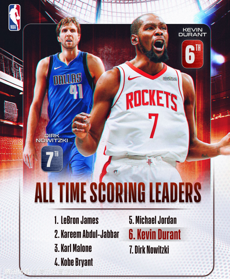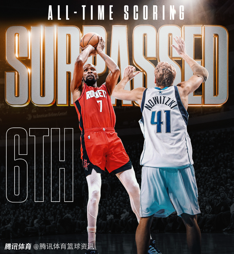 杜兰特:总得分超诺天王意义重大 他一直是我最欣赏的球员之一