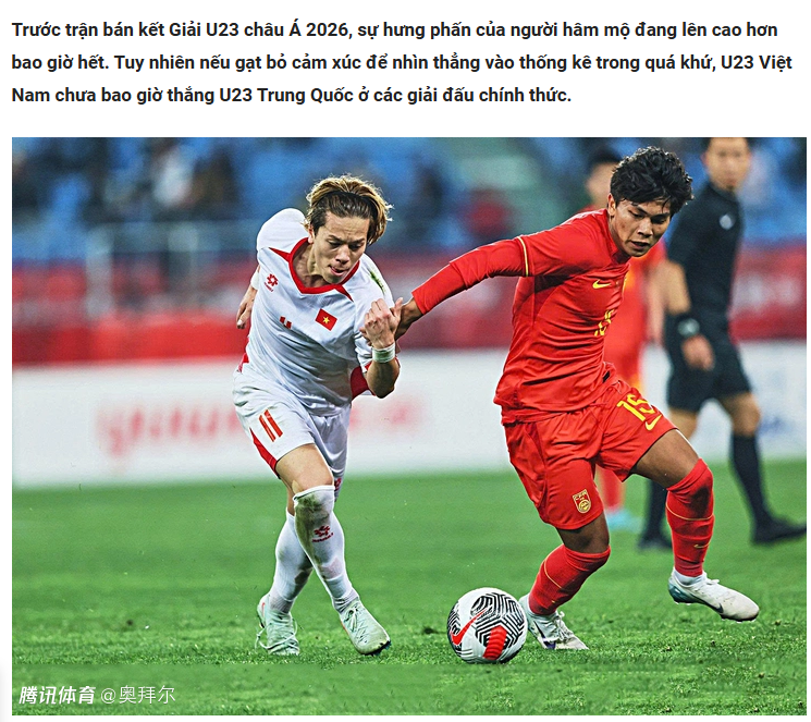 “U23亚洲杯与熊猫杯完全不同,目前这支中国队不再是一支踢得非常开放的球队。本届U23亚洲杯,他们是唯一一支没有丢球的球队,而且整体非常出色。在安东尼奥的带领下,中国队习惯于深度防守,让比赛变得非常沉闷。他们知道如何取得领先,并且在对手分心时给予惩罚,这是越南足球过去多次经历过的。”