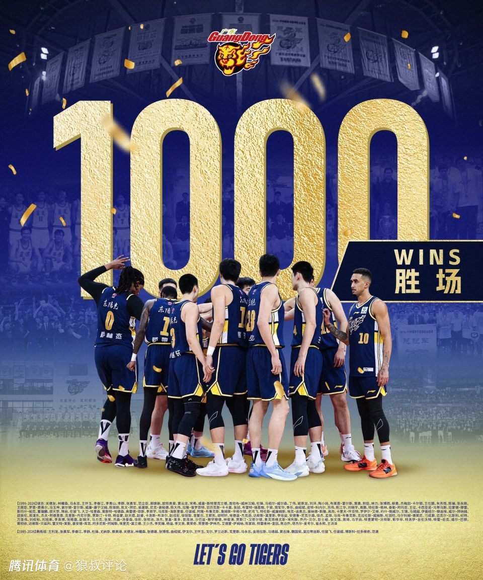 俱乐部成立到现在30多年了,走到现在不容易,在当地政府、广东省体育局的支持下,在中国篮协的领导下,一直持续成为中国篮球的一支竞争者,也为国家队输送了大量国家青年队和国家队的运动员。作为球队一分子,我还是非常自豪的,希望球队接下来会越来越好,恭喜球队获得历史上第1000场胜利。