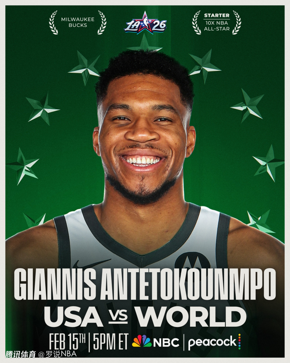 字母哥成为东部全明星首发,他是东部得票最高的球员。这是他生涯第10次入选全明星,也是连续第10年入选。赛季至今, 字母哥场均28.8分9.5篮板5.5助攻。
