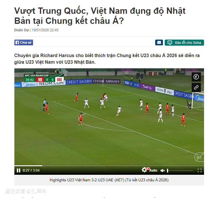 2026-01-20 10:20北京时间1月20日,U23亚洲杯半决赛,中国队将对阵越南队。赛前,苏格兰足球专家理查德・哈库斯表示,他期待越南队和日本队会师决赛。