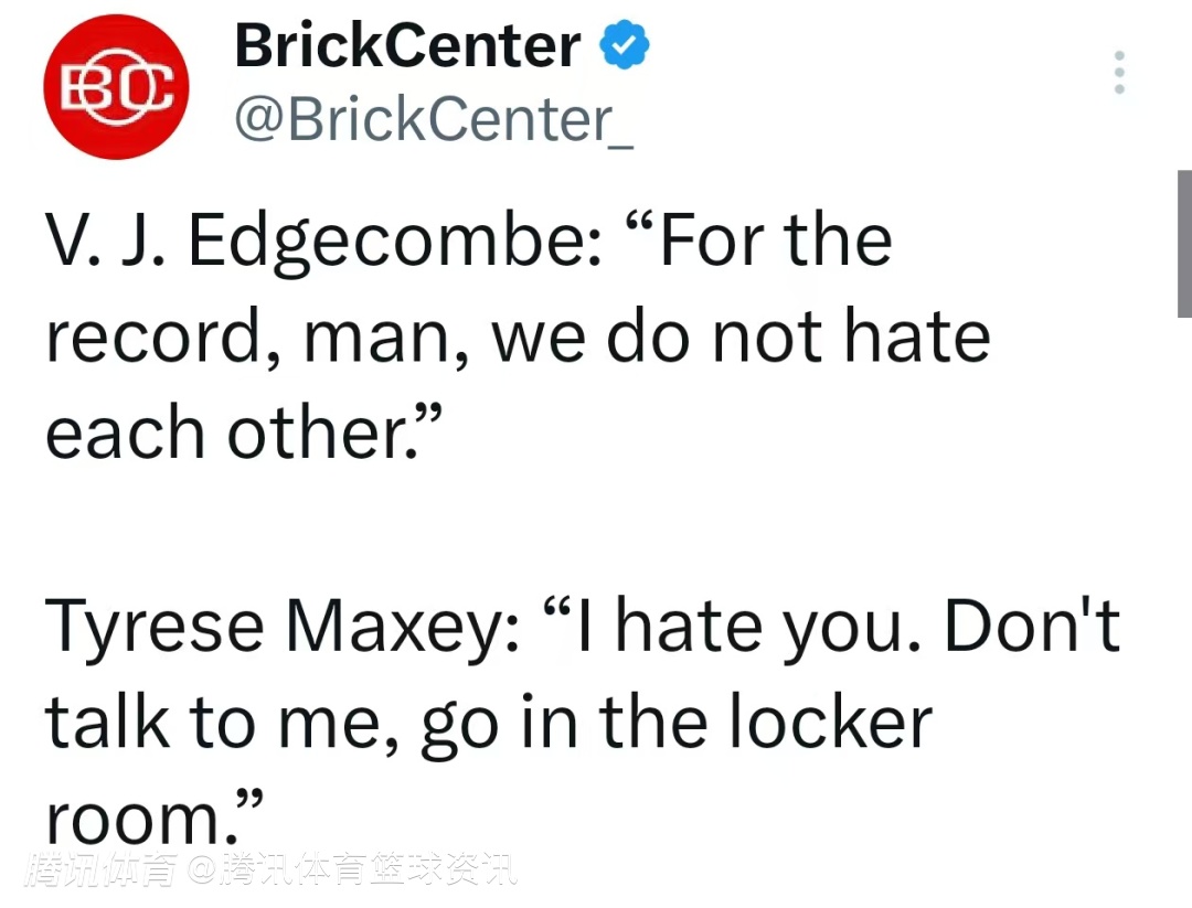 此前,在76人115-117不敌骑士的比赛中,马克西与埃奇库姆在比赛间隙进行了激烈交流,马克西上篮得手后,骑士迅速发动快攻,而他与埃奇库姆在退防时出现换防漏人,直接导致米切尔无人盯防,轻松命中三分。