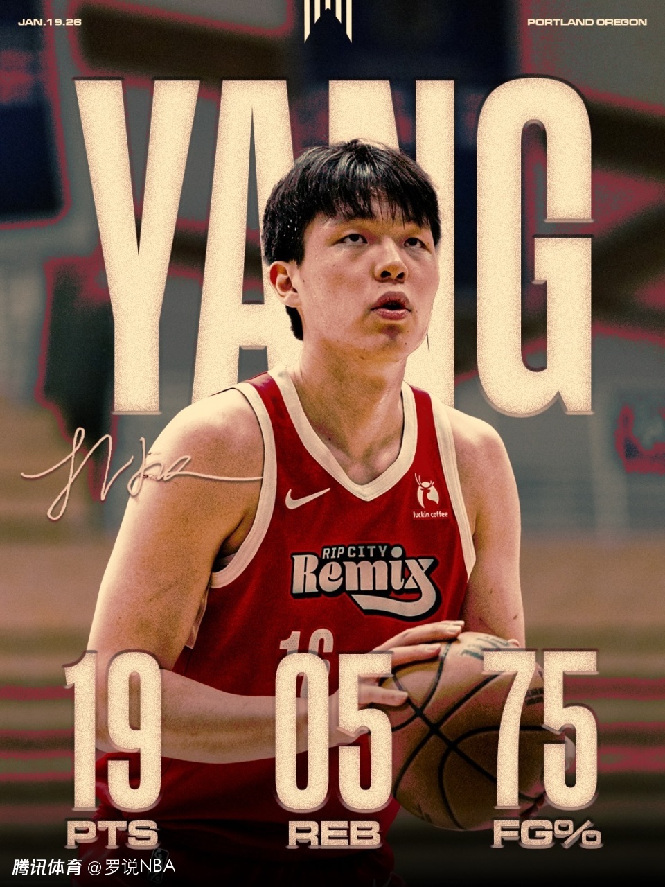 混音赛后官方配文:“又一场轻松的胜利到手。”混音官方也晒出了小杨本场比赛的数据海报:19分5篮板,75%的投篮命中率(注:官方海报闹了乌龙,实际是罚球命中率75%)