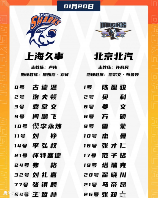 北京3位本土核心周琦、赵睿与曾凡博均因伤缺席,外加斯佩尔曼也伤停,上海缺少李添荣。