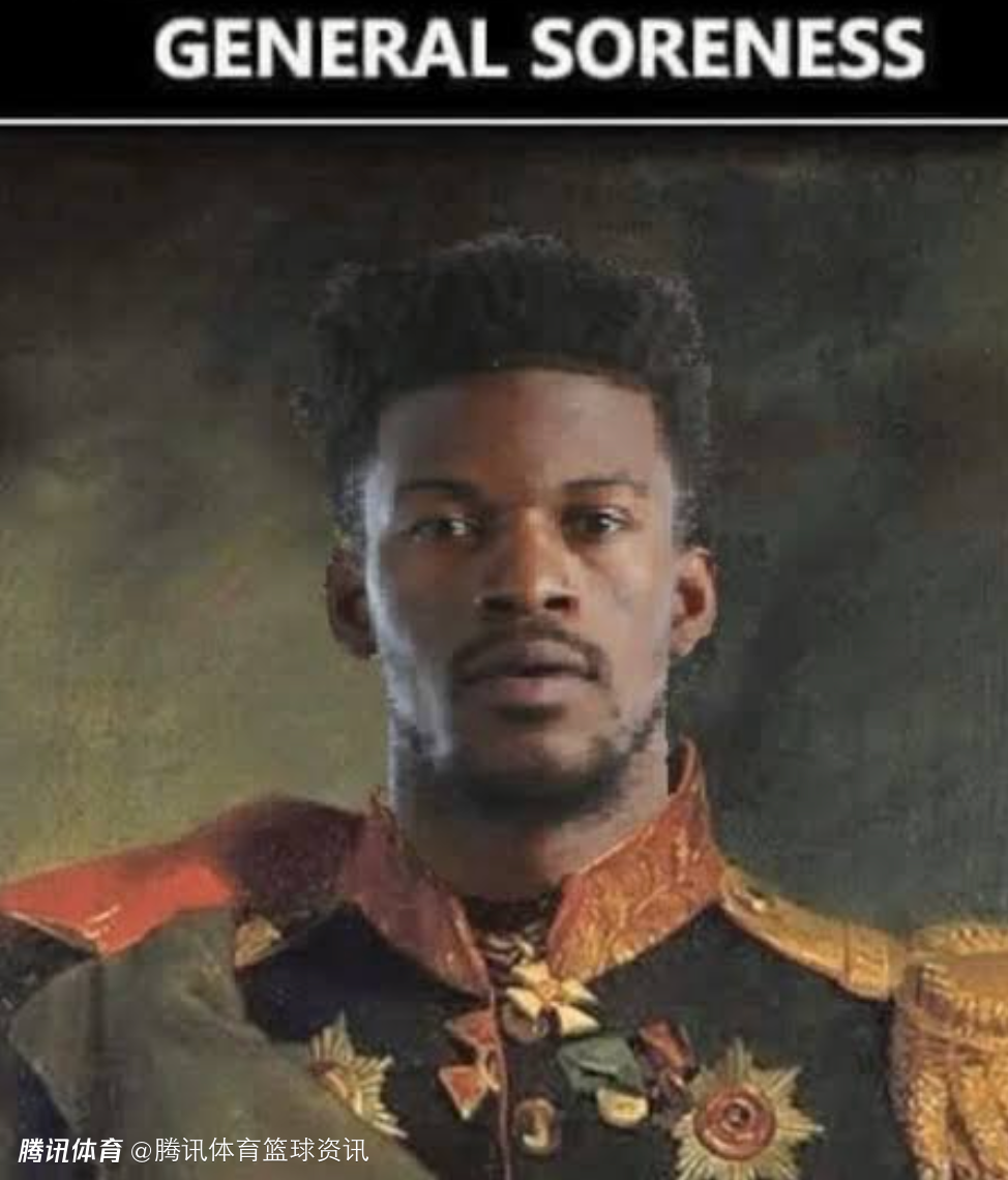 巴特勒晒的这张图带有一语双关的意思,明面是一位将军名字叫Soreness,但这两个单词可以翻译成“全身酸痛”,放在NBA伤病报告里,基本意思是球员只是身体疲劳、有点不舒服,但没有明确受伤部位,经常被用来给老将轮休、背靠背休息或负荷管理找个官方理由,所以大家通常会理解成“没大事,就是不让打”。