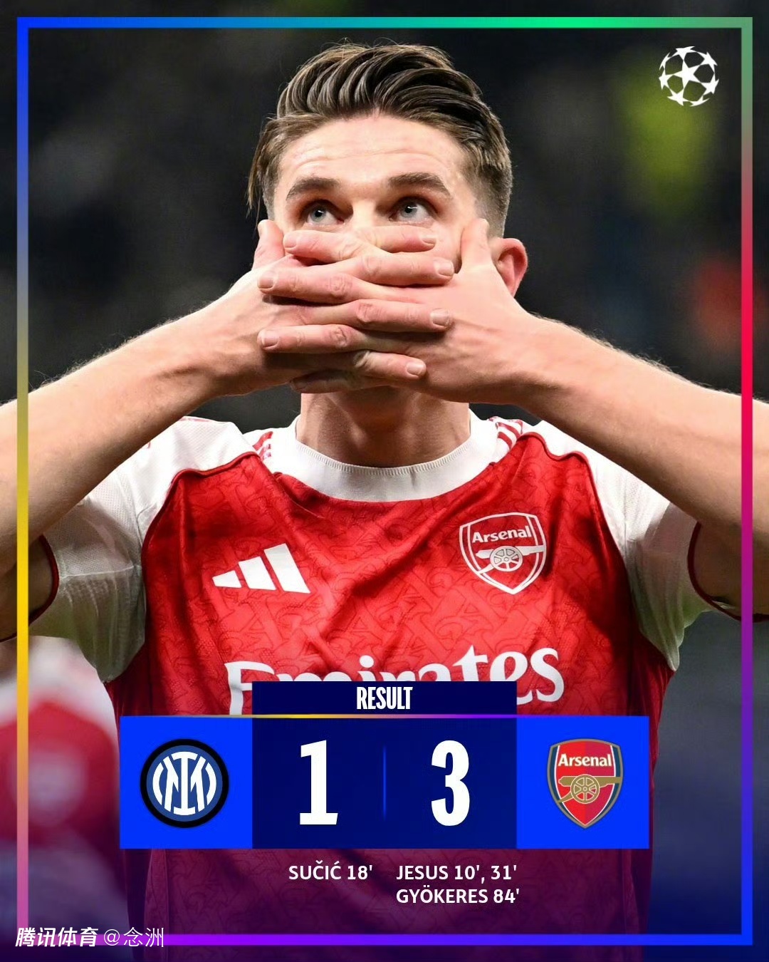 欧冠联赛阶段第7轮,阿森纳客场3-1战胜国米,7战全胜,国米遭遇欧冠3连败。热苏斯破门,苏契奇世界波扳平,热苏斯头球再下一城,哲凯赖什世界波锁定胜局。