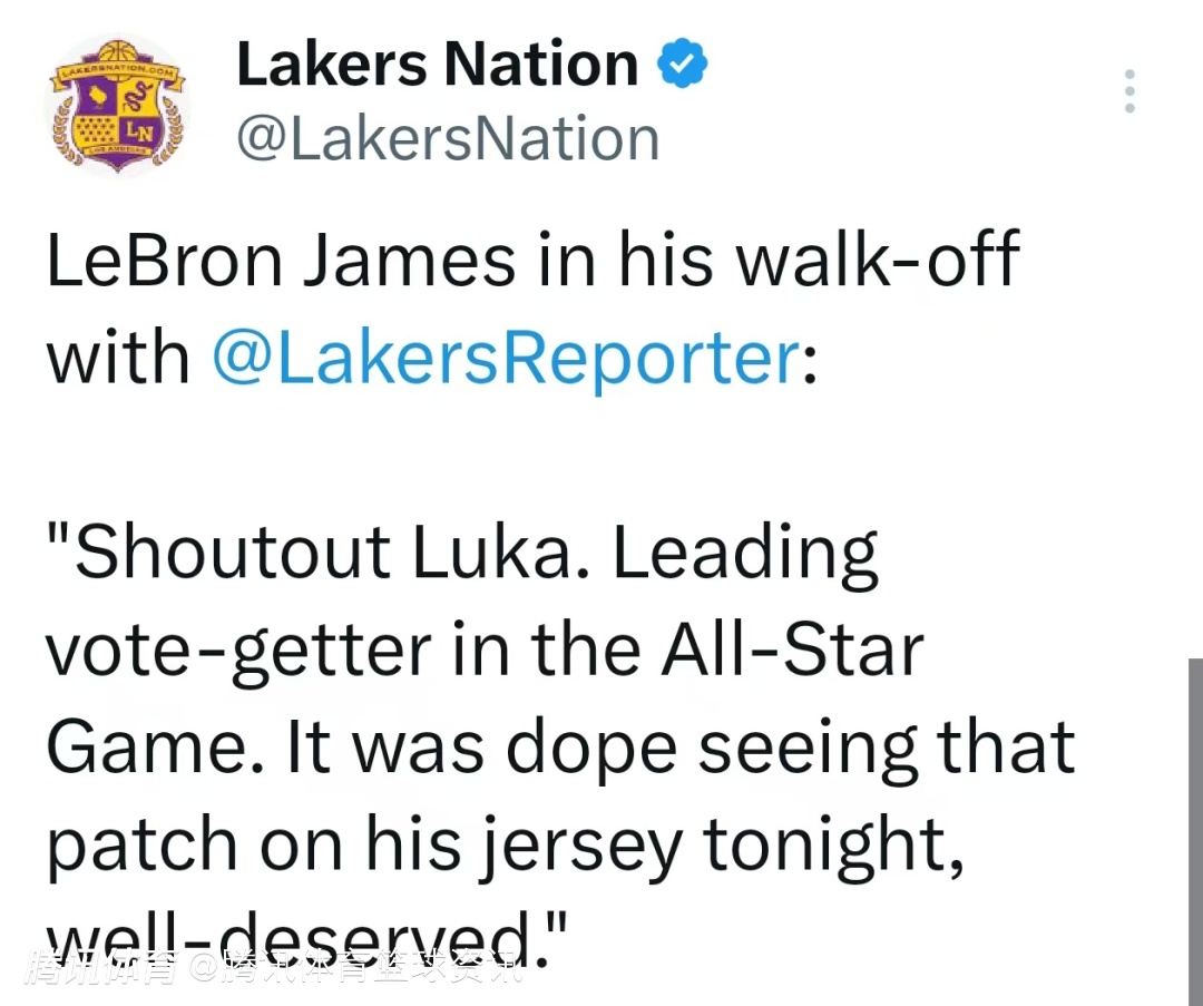 关于东契奇的表现,詹姆斯说道:“首先必须要称赞一下全明星票王东契奇。今晚看到他球衣上的全明星首发补丁,真的太帅了。他的表现也充分证明了,他配得上如今的地位。对手的注意力几乎全在他身上。只要我接到球,形成以多打少的四打三局面,我就有把握为队友送出精准传球。”