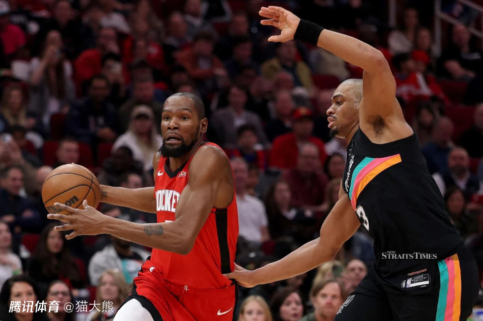 火箭111-106战胜马刺,杜兰特出战39分钟,12投7中,得到18分4篮板7助攻,他本赛季得分突破1000分,杜兰特用了39场做到这点,在队史追平威少,仅次于哈登(38场)。