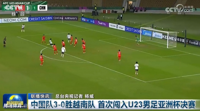 《新闻联播》新闻稿内容:北京时间今天凌晨,亚足联23岁以下男足亚洲杯半决赛在沙特阿拉伯吉达结束,中国队凭借彭啸、向余望、王钰栋的进球,3-0击败越南队,首次晋级该项赛事的决赛。