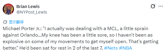 2026-01-22 07:20北京时间1月22日,篮网球星小迈克尔-波特在接受采访时谈及自己的伤情。