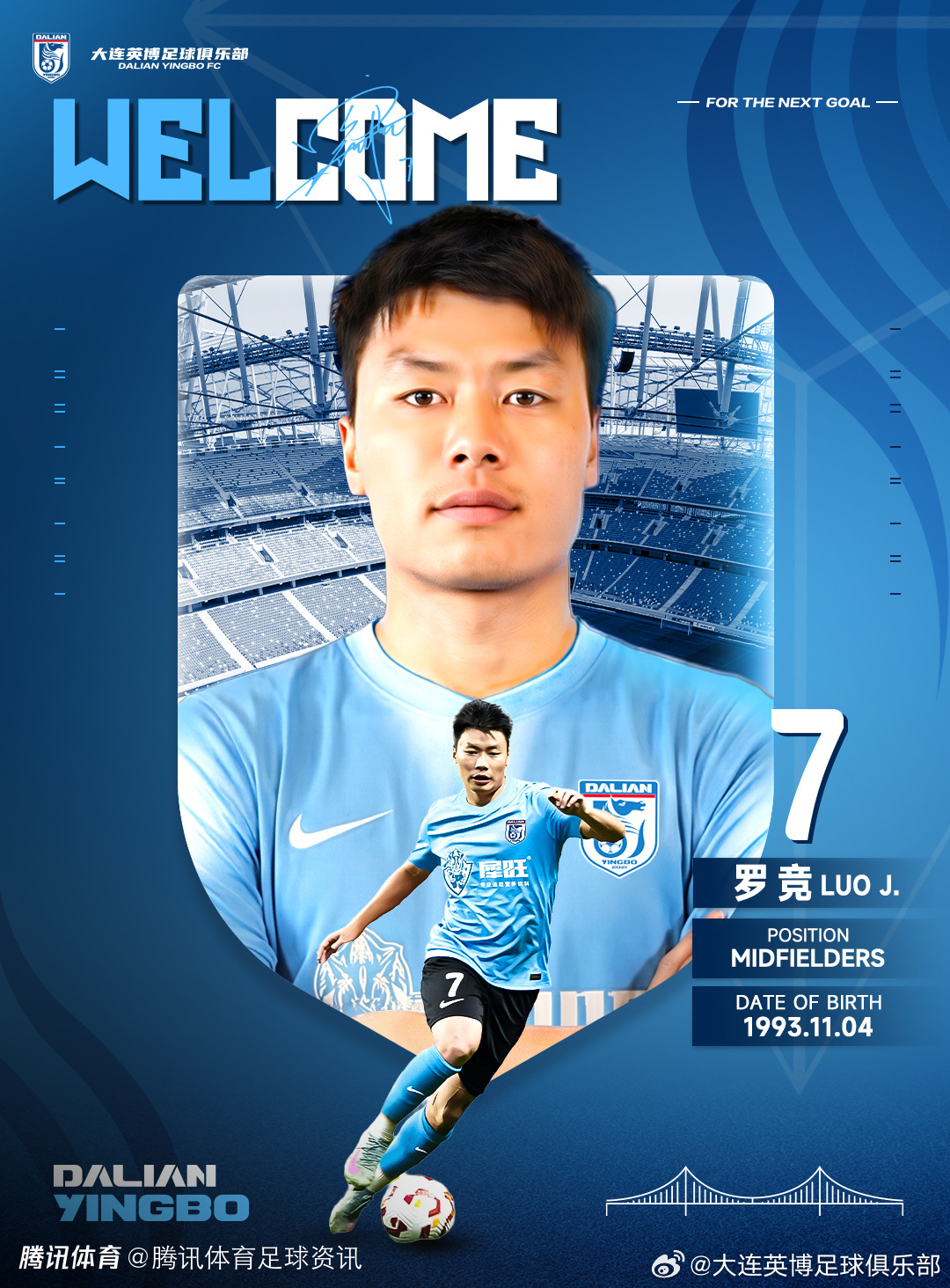上赛季3球4助攻!官宣:欢迎罗竞加盟大连英博足球俱乐部