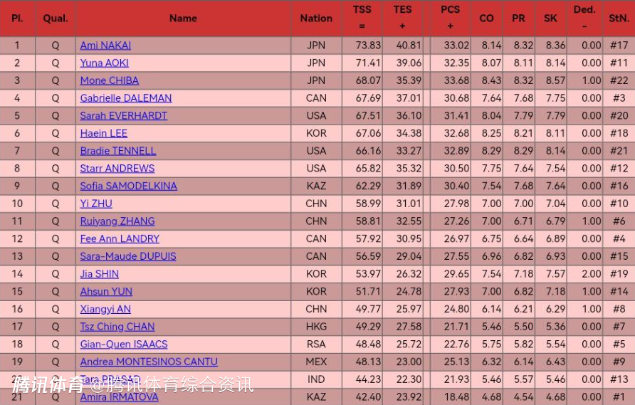 四大洲花滑锦标赛女单短节目:朱易58.99分排名第10 张瑞阳第11安香怡第16