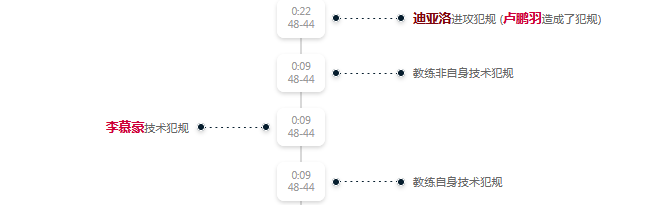 经过录像回看,迪亚洛,贺希宁,约翰逊,奈特各领到一次技术犯规。
