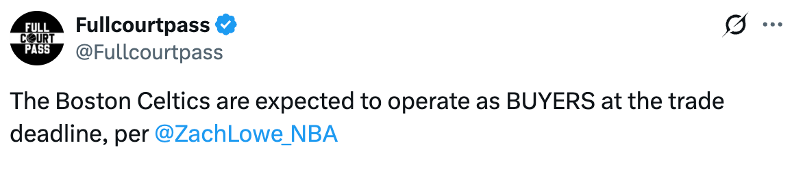2026-01-22 23:10北京时间1月22日,据美记Zach Lowe报道,联盟里的所有流言都指向波士顿凯尔特人现在打算成为买家。