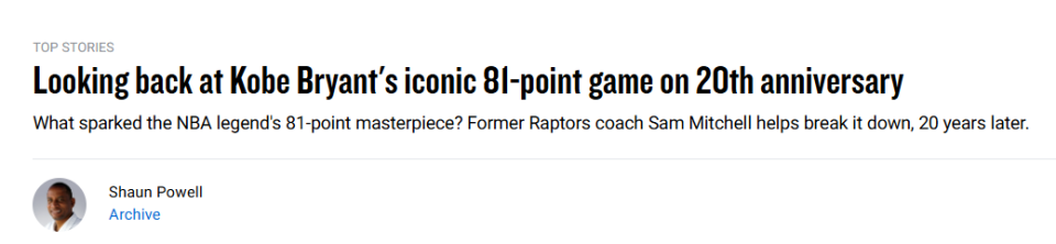 2026-01-23 06:50北京时间1月23日,20年前的今天,科比-布莱恩特在对阵猛龙的比赛中轰下81分。NBA官网撰写长文致敬这一神迹,并采访了当时科比这场比赛的对手主帅萨姆-米切尔。他从对手的角度回顾了这一场经典之战,以下是官网全文——