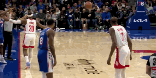 加时赛,乔治三分命中,埃奇库姆补篮得分,杜兰特三分也中,阿门上篮得分,双方战平。马克西上篮得分,乔治封盖申京,乌布雷上篮得分,76人领先4分。杜兰特进攻犯规,领到个人第8次失误。随后杜兰特中投得分,火箭还落后两分。火箭使用犯规战术,马克西两罚两中,随后成功抢断阿门,完成扣篮。最终,76人加时击败火箭。