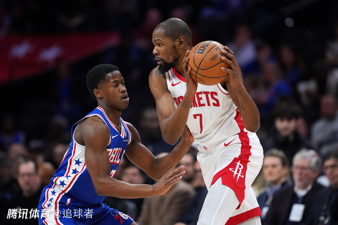 第二节火箭和76人打得十分胶着,可上半场最后2分34秒,火箭进攻断电,被76人打出一波14-3的反击高潮,半场打完火箭61-68落后7分,这一节杜兰特3投3中,打成不讲理2+1以连中招牌中投,防守端飞身救球摔出底线。