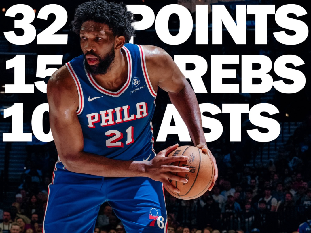 2026-01-23 13:20在Xfinity移动球馆这个两年前乔尔-恩比德曾狂砍70分对阵马刺的福地,76人队不仅以128-122险胜休斯顿火箭队,这位超级中锋更是斩获30+三双。