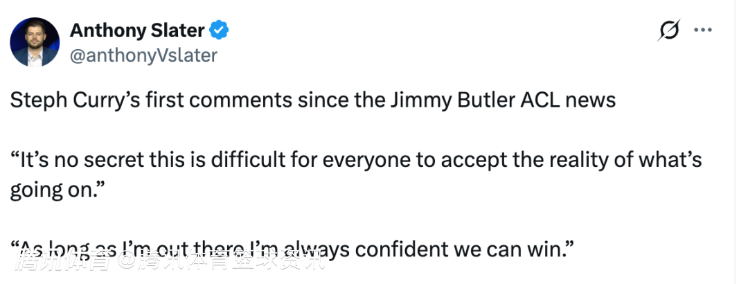 谈及巴特勒的受伤,对球队意味着什么,库里表示:“这显然是个艰难的局面。首先你会想到他,想到他的康复和精神状态,只想作为朋友和队友陪在他身边。但从篮球角度来说,我们必须做出必要的调整,努力维持住我们和他一起打造的球队风格。过去两场比赛的调整确实很难,但我觉得我们必须尽快从情绪上走出来,不让事情往错误的方向发展。”