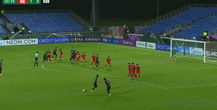 第71分钟,阮庭北主罚禁区前沿任意球,皮球打穿人墙后入网,越南2-1。
