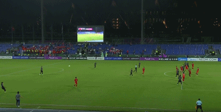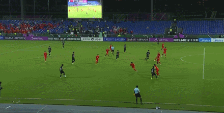 第18分钟,越南队任意球送入禁区被解围,阮泰山禁区前沿凌空抽射打偏。