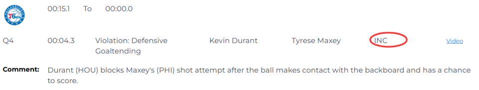 火箭vs76人裁判报告:两次漏判各获利一次 漏吹干扰球和投篮犯规