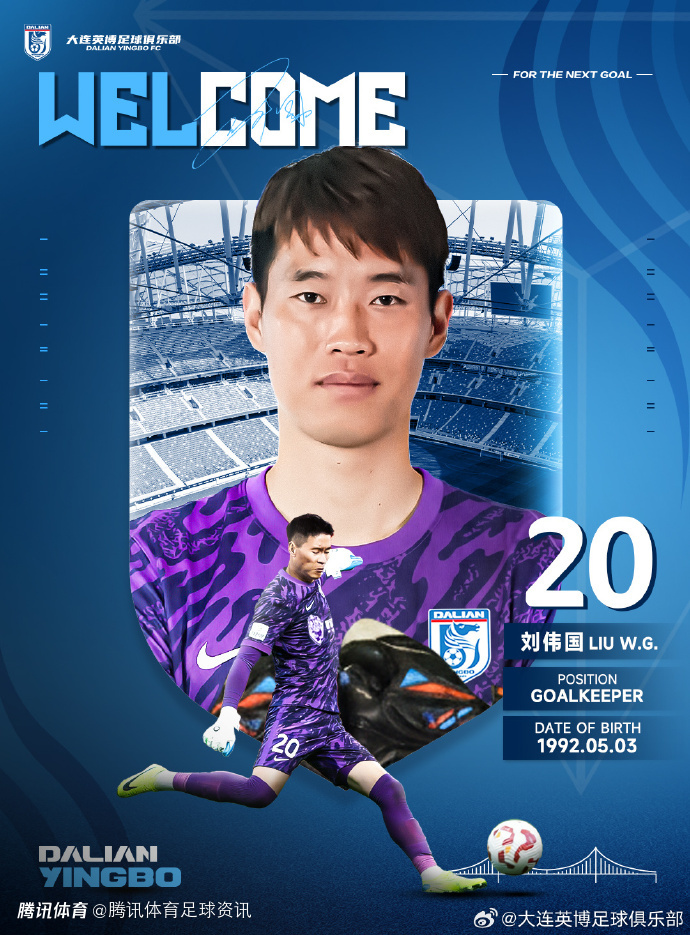 2026-01-24 10:10北京时间1月24日,经俱乐部与球员本人友好协商并达成一致,门将刘伟国正式加盟大连英博足球俱乐部,新赛季将身披英博战袍,为球队把守最后一道防线。