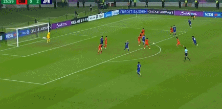 第20分钟,小仓幸成禁区前沿反抢后远射得手,日本队2-0。